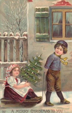 VINTAGE CHRISTMAS POSTCARD-EURO TYKES AND SLEIGH     Completed    $6.95