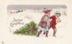 Xmas PC. 1913. BOY & GIRL BRINGING HOME LIVE TREE     Completed    $6.01