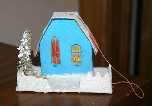 Vintage Putz Cardboard & Mica House & Santa     Completed    $6.01
