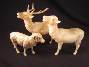 3 Antique Celluloid Creche Animals Deer Sheep Ram     Completed    $5.99