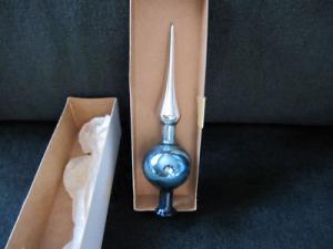 Vintage Blue Silver Mica Glass Xmas TREE TOPPER     Completed    $5.99