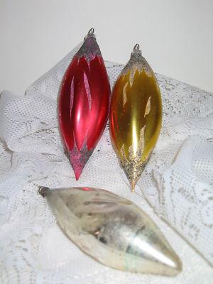 VINTAGE~LOT THREE ELONGATED XMAS TREE ORNAMENTS     Completed    $5.99