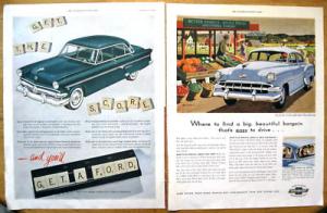 2 1954 2-pg color magazine ads for Ford & Chevy     Completed    $0.99