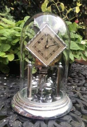 Old Chromed Anniversary Clock Glass Dome     Completed    $30