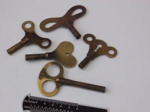 5 GOOD ASSORTED ANTIQUE BRASS CLOCK KEYS     Completed    $29.75