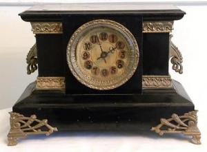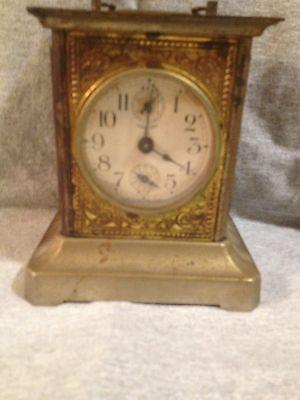 ANTIQUE MANTLE CLOCK METAL CASE VERY HEAVY     Completed    $29