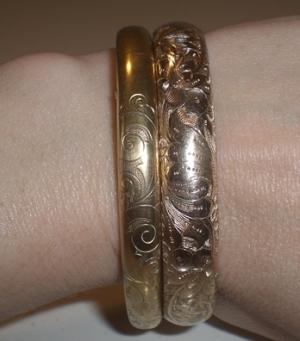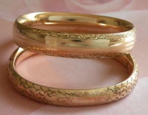 Antique Bracelets Hinged Bangles Rolled Gold Etched     Completed    $90.99