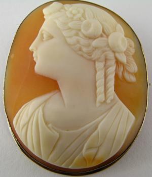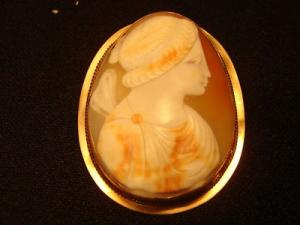 CAMEO PIN-ANTIQUE-2 Inch-GOLD-Carved Woman-NR!     Completed    $90.89