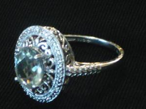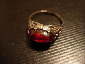 ANTIQUE 10KT WG FILIGREE GARNET RING     Completed    $90.54