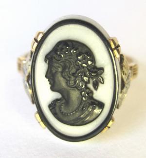 Antique Victorian 10K Gold & Onyx Cameo Ring w/ BOX     Completed    $90.99