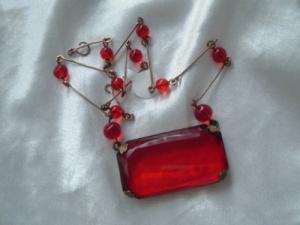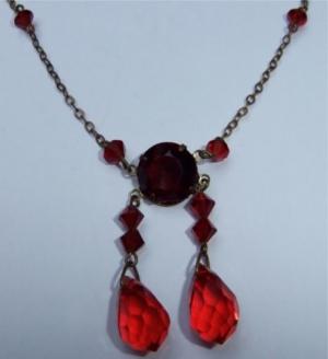 SIGNED ANTIQUE ART DECO RED CZECH GLASS NECKLACE     Completed    $90.99