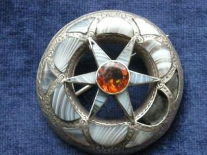 ANTIQUE MONTROSE AGATE AND CAIRNGORM SILVER BROOCH     Completed    $90.22