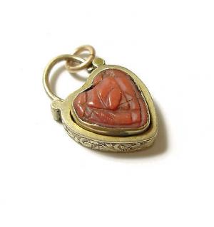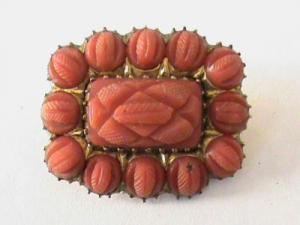 Genuine Antique Georgian Gold Carved Coral Brooch     Completed    $90.21