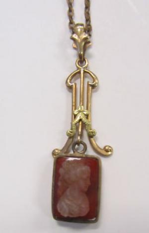 Stunning Antique 10K Gold Carnelian Cameo Necklace     Completed    $90.98