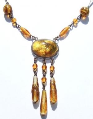 ANTIQUE ART DECO NOUVEAU AMBER CZECH GLASS NECKLACE     Completed    $90.36