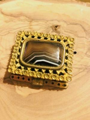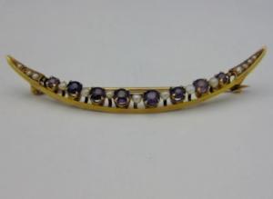 Antique Deco Amethyst Hand Carved Yellow Gold Pin     Completed    $86.89