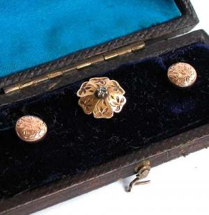 9ct GOLD Cased FINE ANTIQUE SHIRT STUDS 1894     Completed    $84.15