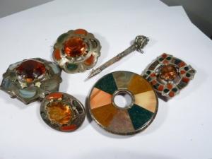 SUPERB ANTIQUE SCOTTISH HARDSTONE BROOCH 19th C.     Completed    $83.7