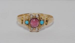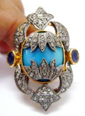 Antique Victorian 15ct Gold Turquoise Diamond Ring     Completed    $83.54