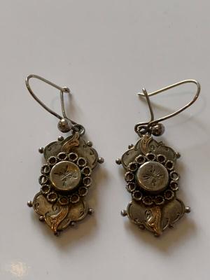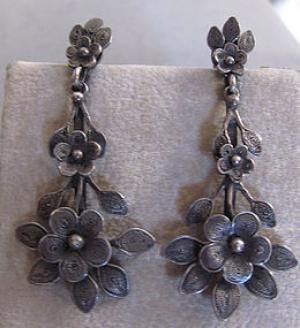 Antique Coin Silver Filigree Flower Earrings Floral     Completed    $83.99