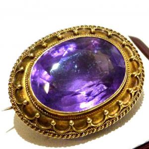 EARLY ANTIQUE GOLD FACETTED AMERTHYST & HAIR BROOCH     Completed    $83.54
