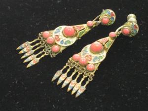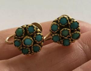 Antique Gold And Turquoise Cluster Earrings     Completed    $82.74