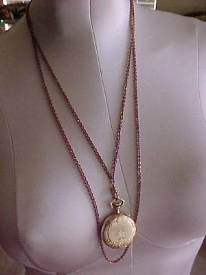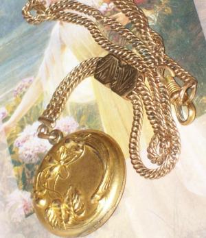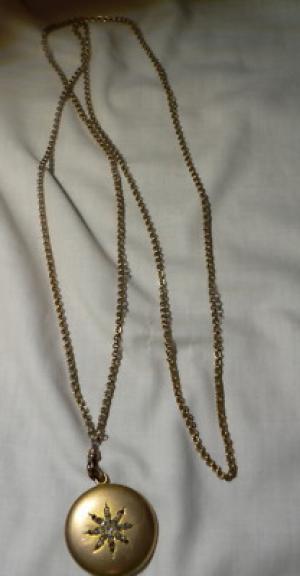 Antique GOLD LOCKET NECKLACE, Long Chain, Pictures     Completed    $82.89