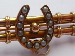 ANTIQUE 9ct GOLD & SEED PEARL HORSE SHOE BAR BROOCH     Completed    $82.33