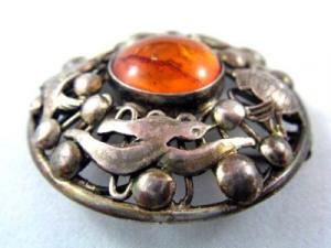 Antique Solid Silver & Enamel Brooch - C-Clasp - A1     Completed    $82.39