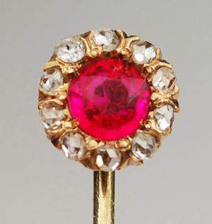 Antique Gold Mine Cut Diamond Ruby Stick Pin     Completed    $82