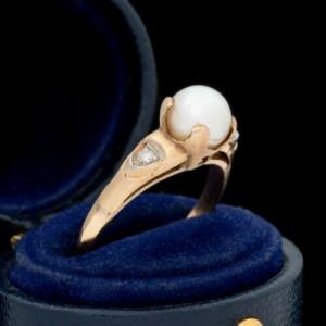 Vintage Antique Rose Gold Jade and Pearls Ring     Completed    $82