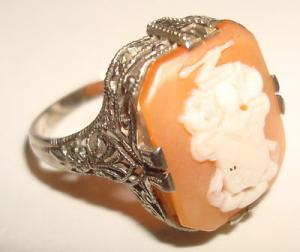 Antique 14k Filigree Cameo Crest Ladies Ring     Completed    $80.79