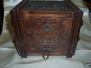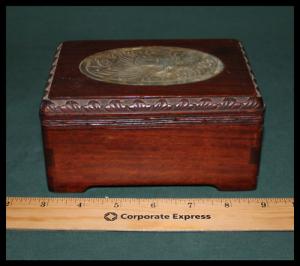 Fine Antique Jewelry Box Wooden With Jade Engraving     Completed    $79.99