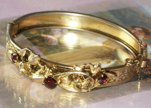 Antique Vintage Gold Gilt Garnet Bracelet Bangle     Completed    $80.54