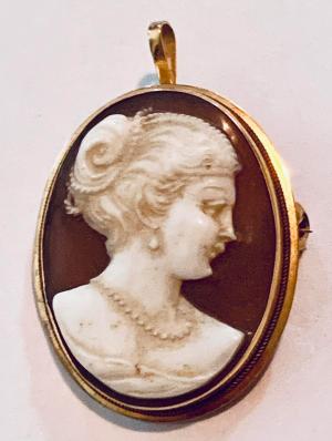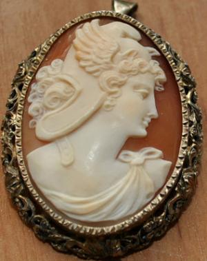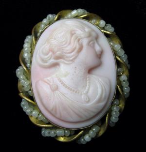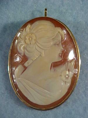 Antique 10 kt gold Cameo pendant / brooch Coral?     Completed    $78.89