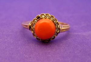 ANTIQUE VICTORIAN 9K GOLD CUT DIAMONDS & CORAL RING     Completed    $78.98