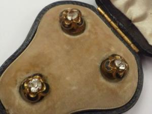 ANTIQUE CASED SET OF 3 GEM SET BUTTONS STUDS     Completed    $79.26