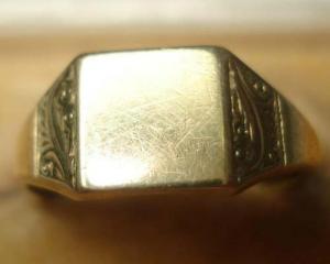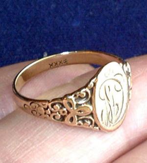 ANTIQUE 9CT GOLD SCROLL ENGRAVED SIGNET RING 1917     Completed    $76.78