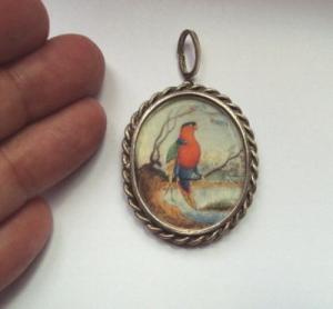 Antique Painted Parrot Miniature Silver Pendant.     Completed    $76.4