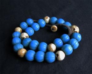 Antique India Himalaya AGED TRIBAL BLUE MELON BEADS     Completed    $76.22