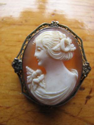 Antique Carved Cameo 925 Sterling Silver Pin Brooch     Completed    $76.26
