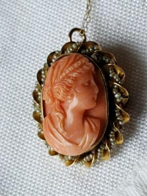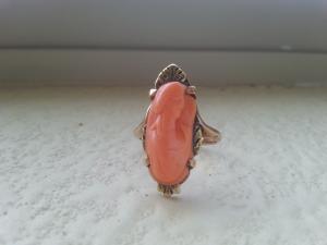 Antique 14K Gold Deco Coral Cameo Ladies Ring     Completed    $76