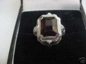ANTIQUE 14K WHITE GOLD GARNET RING SIZE 5     Completed    $76