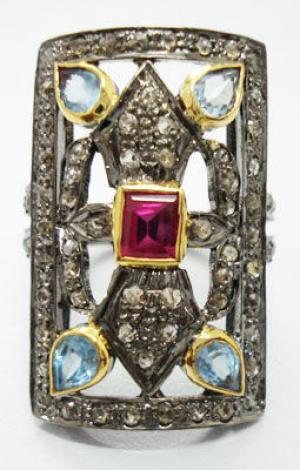 ANTIQUE 10k BLUE STONE AND DIAMOND RING SIZE 5     Completed    $76