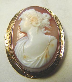 ANTIQUE CLASSICAL WOMAN SHELL CAMEO 10K GOLD BROOCH     Completed    $75.99