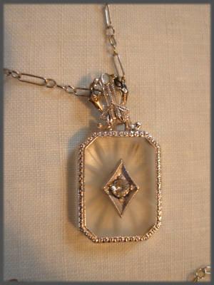 Antique 10K WG Rock Crystal & Diamond Pendant     Completed    $75