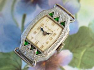 Antique Vintage Deco Ladies BULOVA Emerald Watch NR     Completed    $74.99