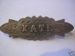 ANTIQUE SILVER NAME BROOCH KATE 1904 BY A & C     Completed    $72.03