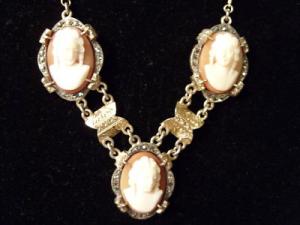 RARE ANTIQUE 3 FULL FACE SHELL CAMEO NECKLACE     Completed    $72