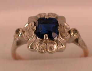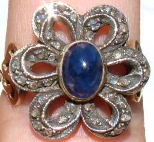 14k BLUE SAPPHIRE DIAMOND ANTIQUE CLUSTER RING     Completed    $70.59